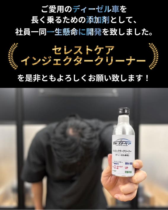 ディーゼル車を長く乗るための添加剤として社員一同一生懸命開発を致しました。