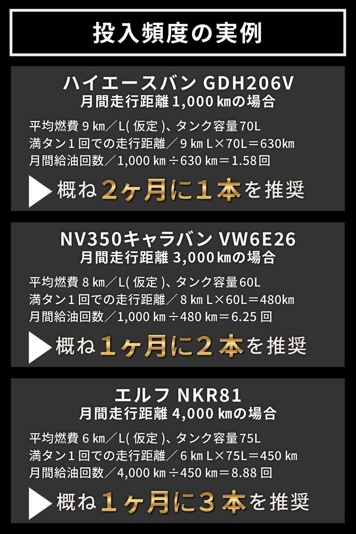 A1: 本製品はディーゼル車専用となります。ガソリン車への使用は出来ません。