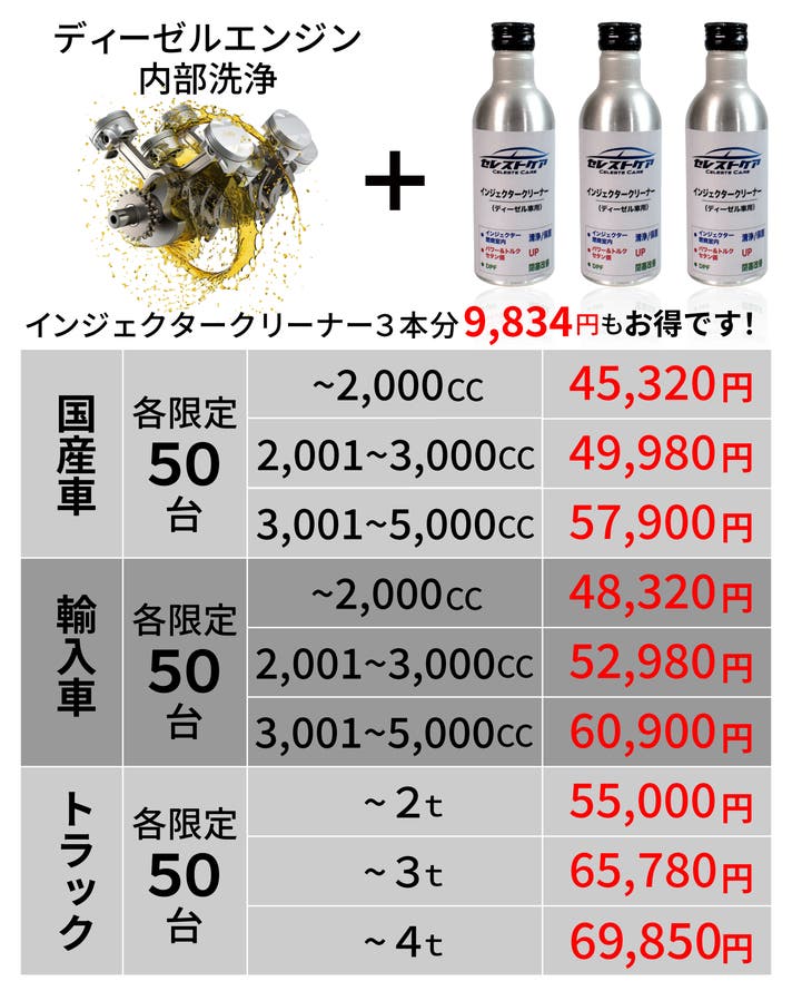 【限定50台】セレストケアエンジン洗浄とインジェクタークリーナー3本セット