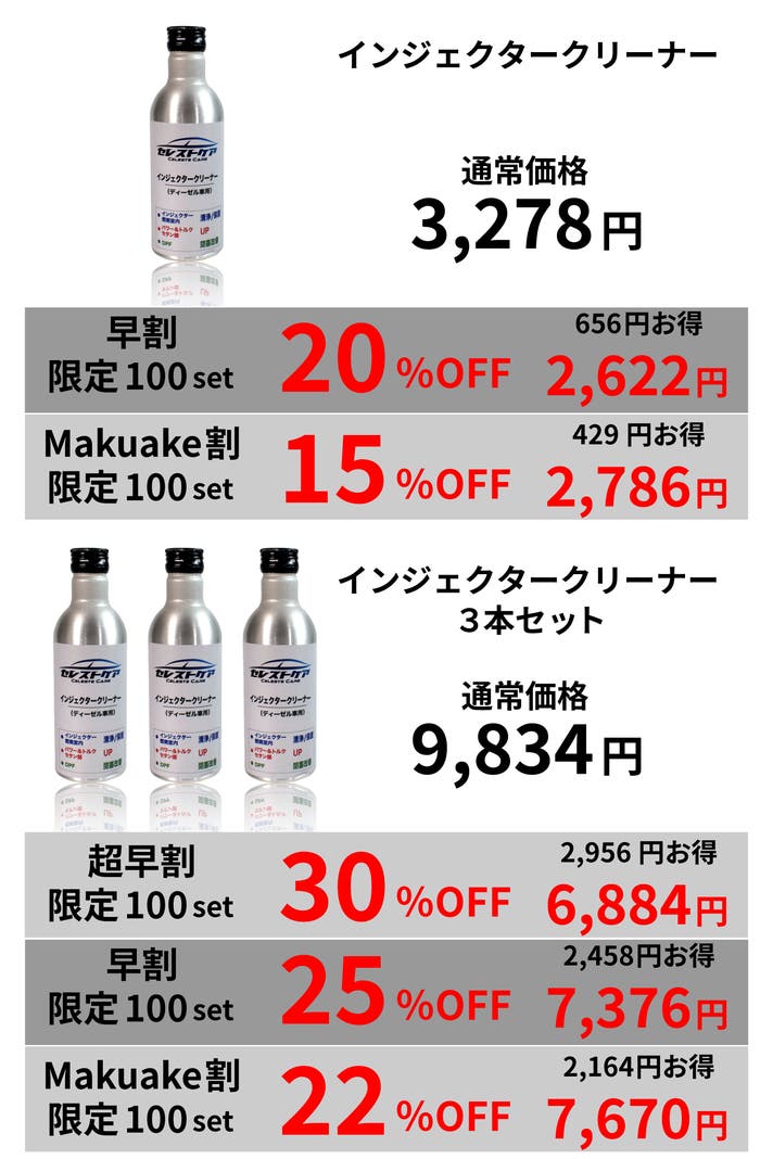 さらに今回はインジェクタークリーナーリリースを記念して、「エンジン内部洗浄+インジェクタークリーナー3本」のセットリターンを設定させて頂きます。
