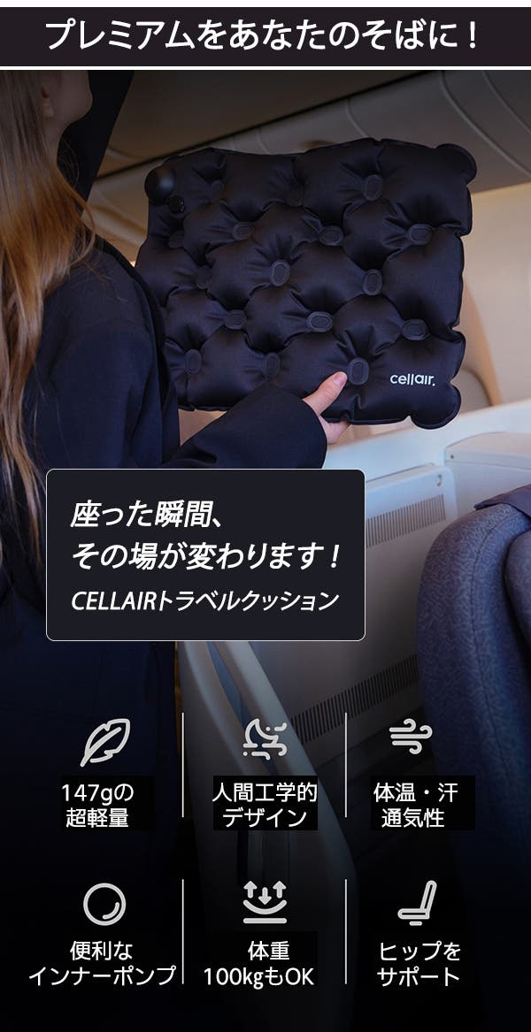 「Makuake(マクアケ)」は、実行者の想いを応援購入によって実現するアタラシイものやサービスのプラットフォームです。このページは、 プロダクトカテゴリの 「機内マスト!超小型・超軽量147g。長時間フライトをもっとラクに、CELLAIR」プロジェクト詳細ページです。