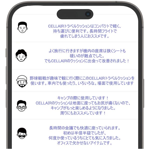 CELLAIRクッションを初めて体験したとき、その軽さと持ち運びやすさ、そして快適な座り心地のバランスに魅力を感じました。移動時間が長くなりがちな旅行や出張、日常の外出シーンにおいて、“荷物にならず、それでいてしっかり使える”製品は、きっと必要とされると確信しました。特に日本では、新幹線や飛行機、長距離バスなどの利用機会も多く、限られた座席空間で快適さを求める方も少なくありません。そうした環境において、CELLAIRの軽量・コンパクト設計は相性が良いと判断しました。移動時間を我慢の時間ではなく、少しでも心地よい時間に変えたい。その想いから、輸入を決定しました。