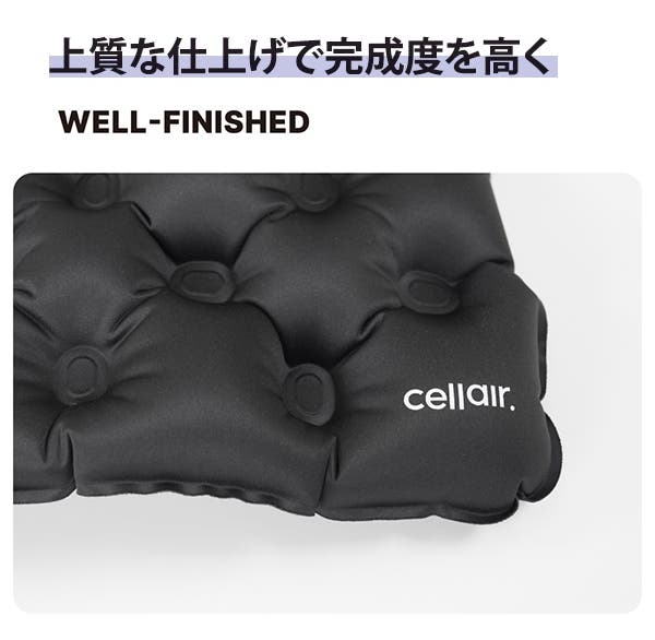 CELLAIR(セルエア)は、「軽さと快適性の両立」をテーマに、エア構造製品を中心に企画・開発を行っているブランドです。素材選定から内部構造まで細部にこだわり、持ち運びやすさと座り心地のバランスを追求。日常から旅行・アウトドアまで幅広く使える製品づくりを目指しています。