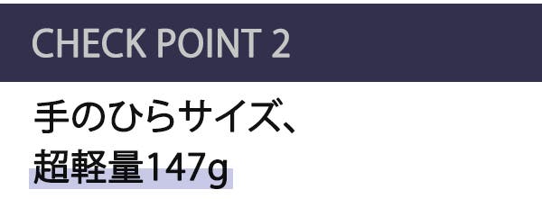 - わずか147g、手のひらサイズ。どこへでも気軽に持ち運べる超軽量設計。