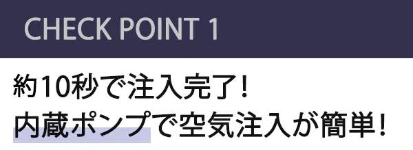 - 息不要の第4世代インナーポンプ内蔵。押すだけ約10秒、いつでも清潔&スピード空気充填。