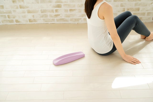 「Cellsh背筋ストレッチクッション」の上に寝転ぶと、肩甲骨をグイッと引き寄せて、背筋をぐい~んとのばす事ができます。