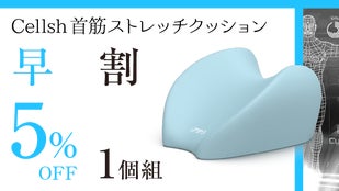 お一人でも多くの方にお得に「Cellsh首筋ストレッチクッション」をご使用頂きたく、先着順ではございますが【超早割】もご用意させていただきました!割引率は最大で15%♪この機会に是非お求めください。