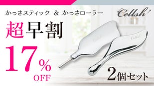 「Cellsh かっさローラー」と「Cellsh かっさスティック」のセットリターンは、超早割でとってもお得な17%OFFでのご提供です!