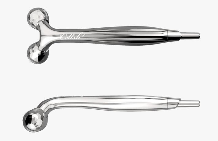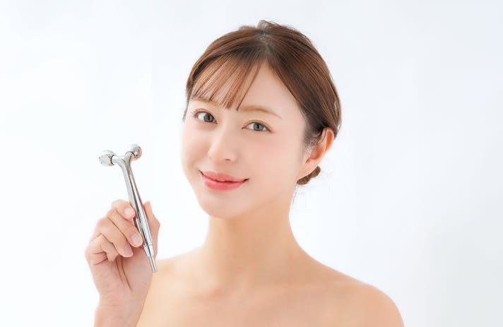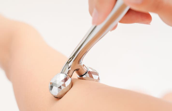 3Dローラーヘッドは、肌をつまみながら、肌の表面を滑らせるように流します。