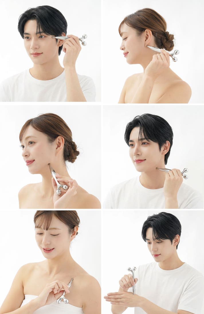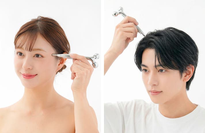 そこで開発したのが、3Dローラー × ポイントスティックのハイブリッド構造。フェイスケアは「つまんで動かす」3Dローラー、コリの集中ケアは「押してほぐす」ポイントスティック