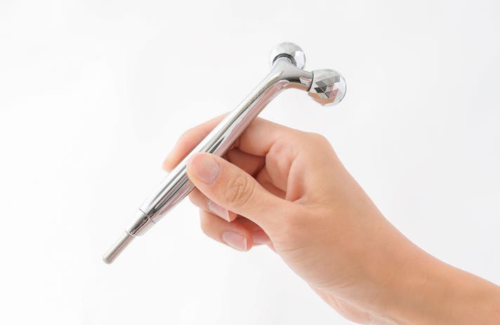 肌に軽く押し当てるとバネが上下に伸縮し、「押す → 戻す」を1秒間に1〜2回のリズムで繰り返すことで、表情筋にアプローチ!