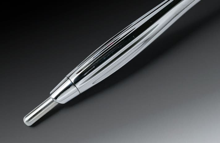 ポイントスティックを押し当てると上下に伸縮し、筋肉のコリにアプローチ