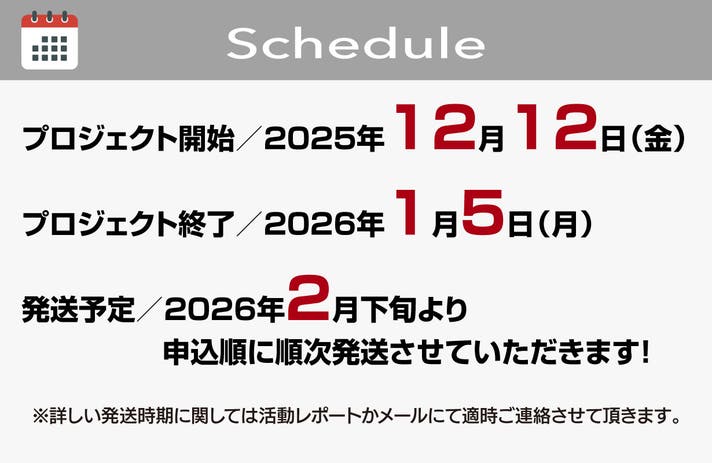*プロジェクト終了後お申し込み順に、順次に発送させていただきます。