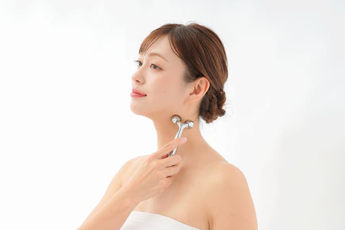 - 360°回転の3Dローラーでお肌をつまみながらアプローチ。心地よく流すフェイスラインケア♪