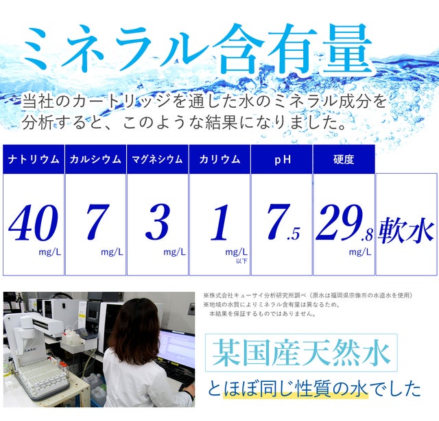 A アトピーなど肌トラブルの原因と考えられている遊離残留塩素の他、溶解性鉛・総トリハロメタン・2-MIB(カビ臭)・CAT・その他12項目を除去できます。