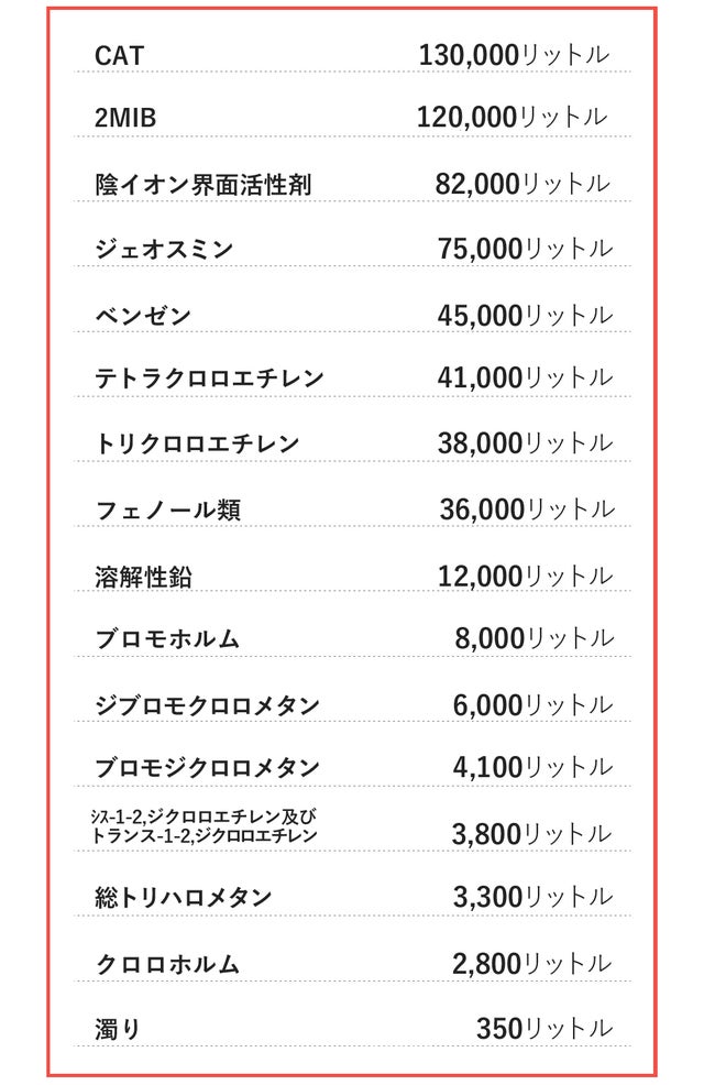 ※除去能力270,000ℓに該当する物質は遊離残留塩素のみです。
