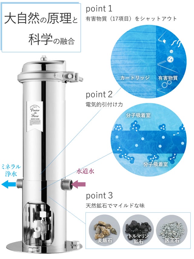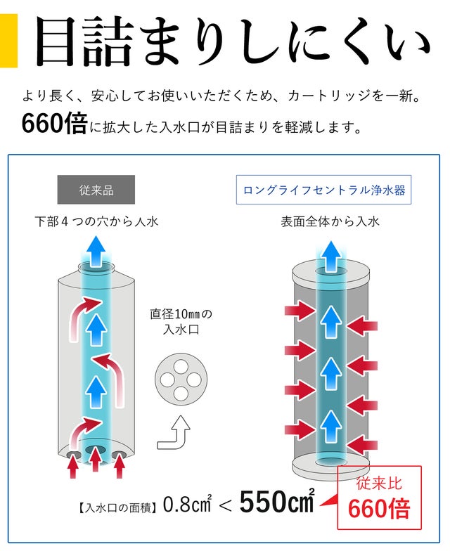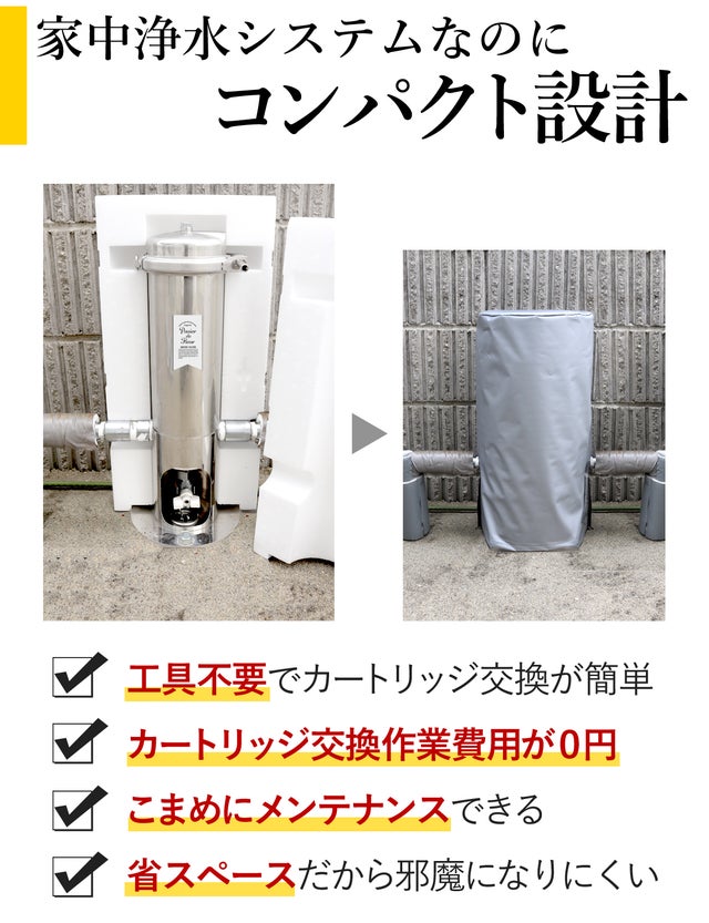 - 自分で簡単にカートリッジ交換ができる、超コンパクト型セントラル浄水器!