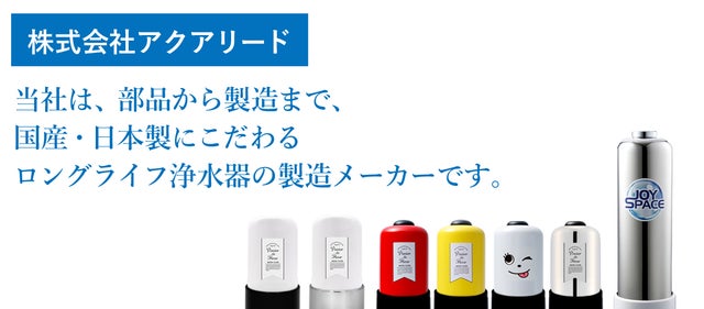 私ども株式会社アクアリードは、部品から製造まで、国産・日本製にこだわるロングライフ浄水器(長寿命型浄水器)の製造メーカーです。