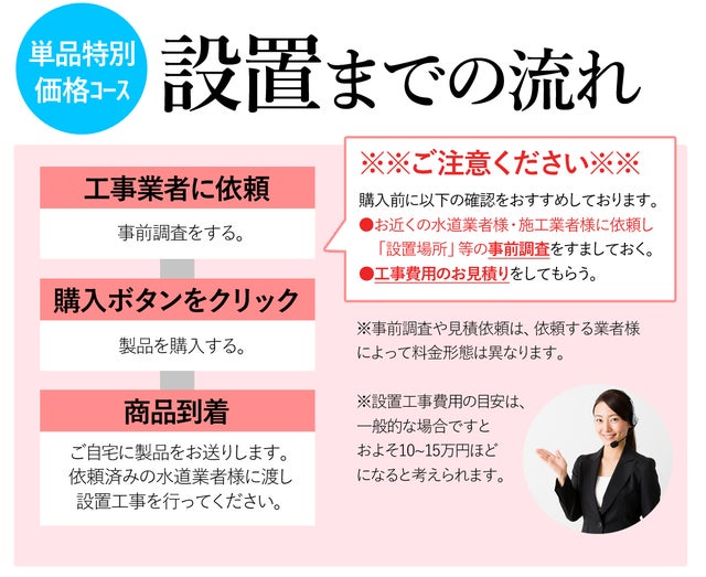 ◆設置工事は、お近く水道業務店かクラシアン様にご依頼ください。