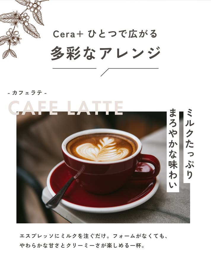 その日の気分やシーンに合わせて、市販のカプセルでも、挽いた豆でも。Cera+なら、どちらも簡単に楽しむことができます。