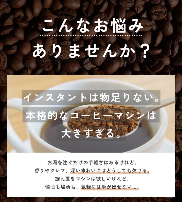 忙しい朝でも、アウトドアでも、ホテルの一室でも「すぐに飲める本格エスプレッソ」があなたのものになります。