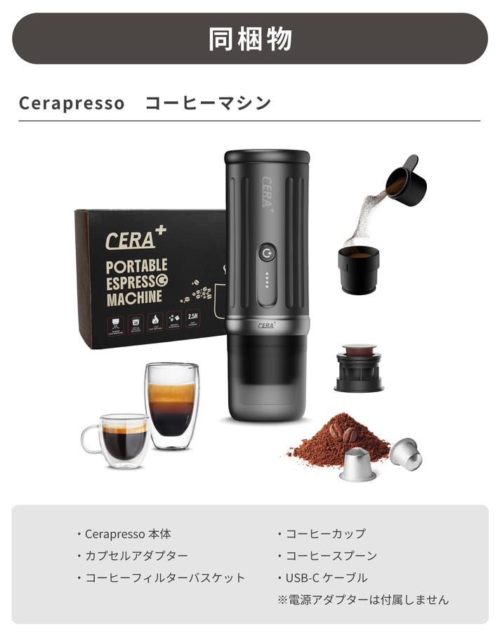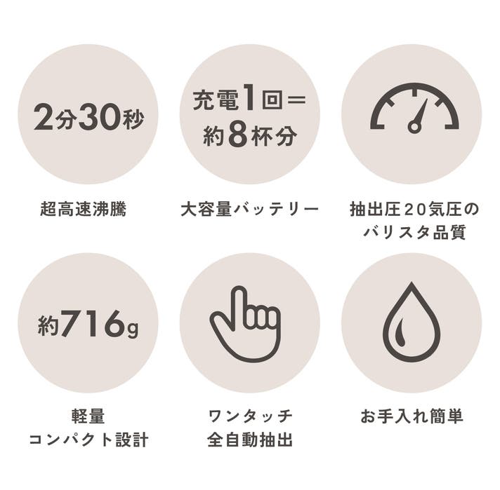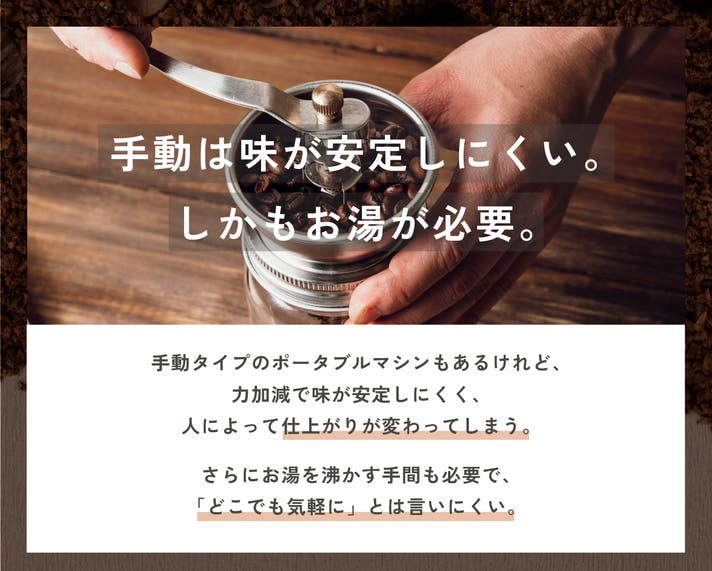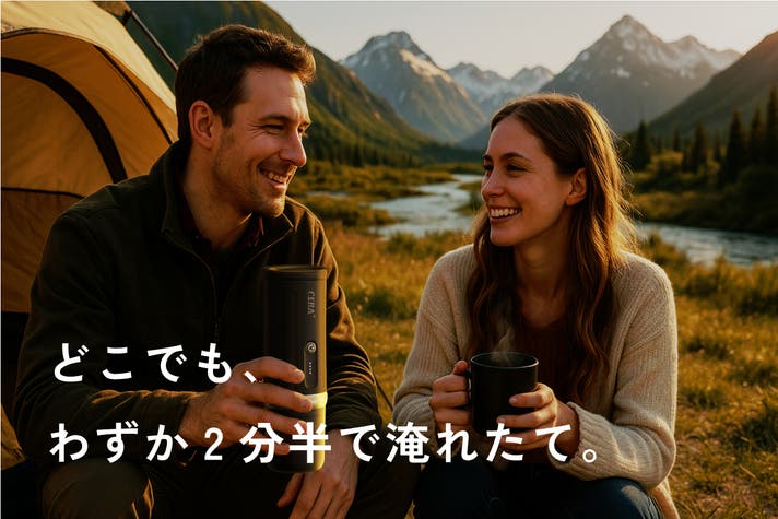 - お湯不要で水から2分半。どこでも本格エスプレッソを楽しめる、新しい贅沢体験をあなたに。
