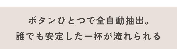 操作はボタンひとつの全自動。難しい調整も力も不要で、誰でも安定した一杯が淹れられます。