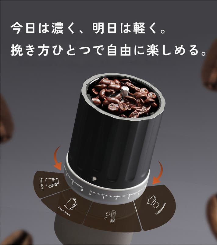 0.02mm単位で粒度をコントロール。エスプレッソからハンドドリップまで、どんな抽出方法でも理想の挽き目に。