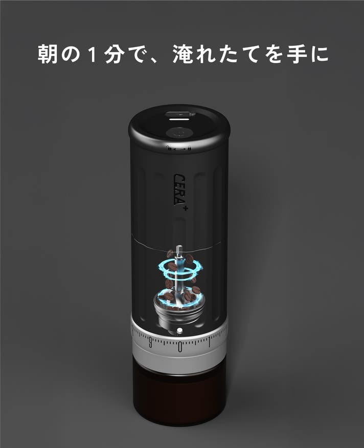 小型グラインダーの多くはモーター出力が弱く、粉砕に時間がかかり、豆が均一に挽けないこともしばしば。Cera+グラインダーは10Wの高出力モーターを搭載。 一度に20gの豆を、わずか約60秒で粉砕できます。