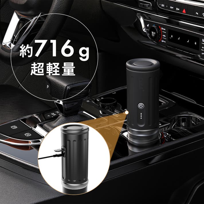 Cera+はドリンクホルダーに収まるコンパクトサイズ。約800gと軽量だから、リュックやバッグに入れても負担になりません。
