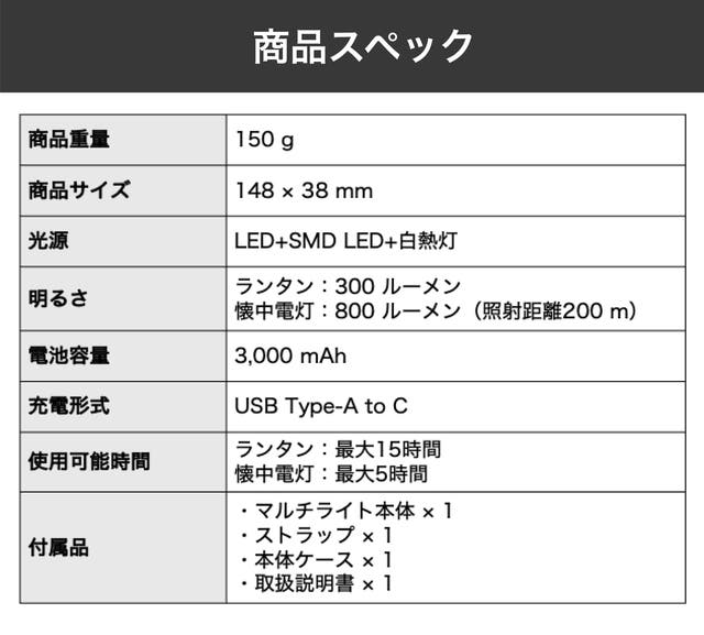 【3点セット割】マルチファンクションライト・ランタン・ヘッドライトの3点セット