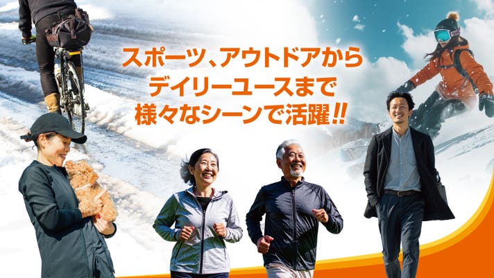 日常の活動やアウトドア、通勤・通学などさまざまなシーンで活躍。スポーツやアウトドアはもちろん、デイリーユースにも最適です。