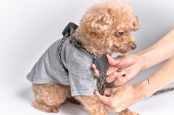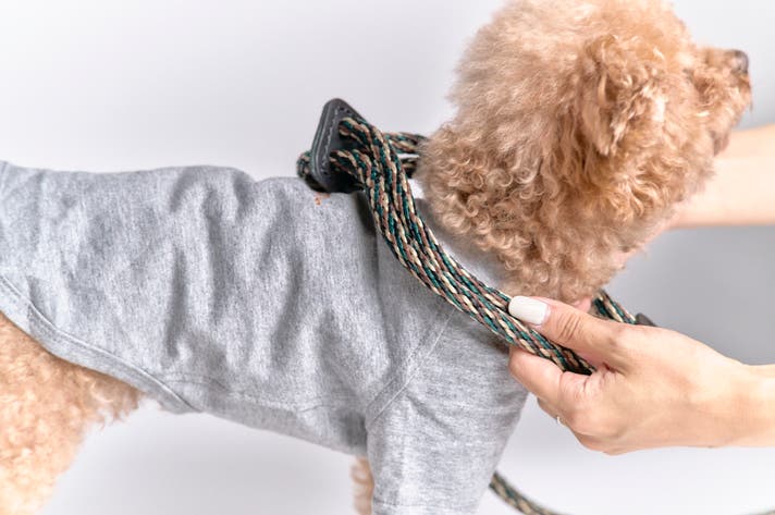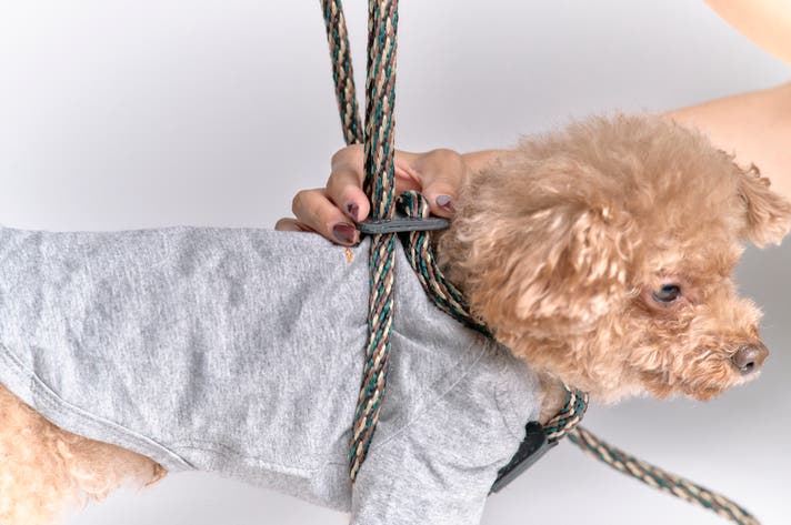 装着は簡単。頭から通して前足を入れ、アジャスターでサイズを整えるだけ。