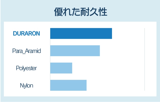 シーガードのDURARON生地は他の素材に比べて優れた耐久性を持っており、作業用手袋などに使われるパラ系アラミド繊維より耐カッティング性に優れています。