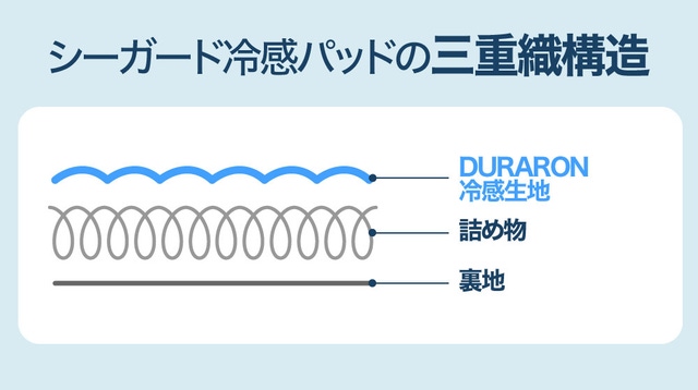 シーガード冷感パッドは丈夫な三重織構造で汗の吸収力と耐久性に優れ、快適な冷感機能が長く維持されるように製作されました。