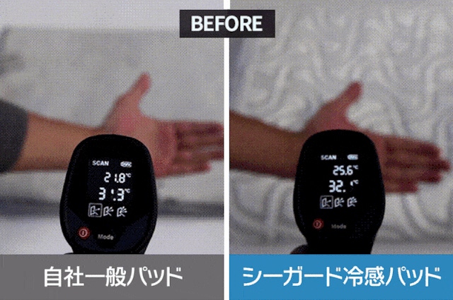 通気性に優れたシーガード冷感パッドは素早く体の熱を外に排出し、皮膚と織物の間の熱対流現象を利用して常に涼しく快適に使用できます。