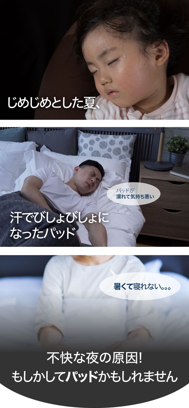 寝返りを打つ度に接触面が変わって涼しくなるので、朝まで快適に眠れるようにサポートします。