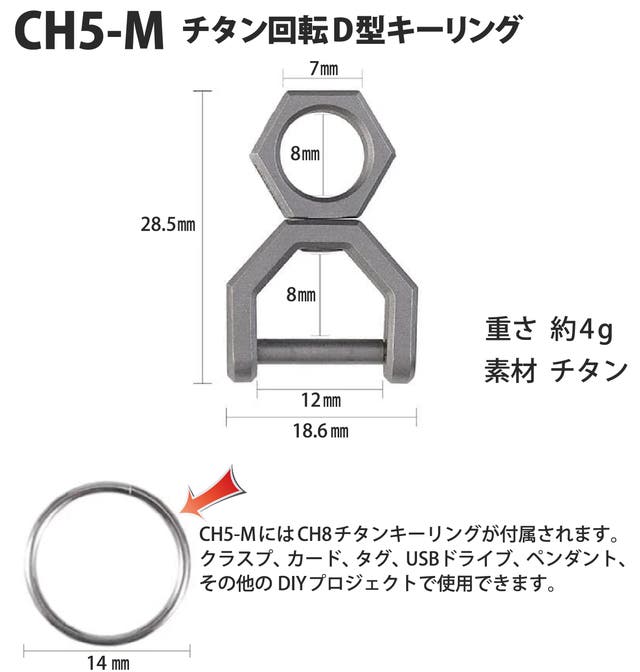 <オプションリターン>CH5-Mチタン回転Dシェイプキーリング