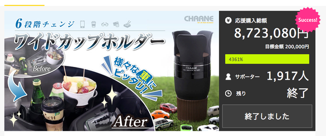 リターンに含まれる「6段ワイドカップホルダー」は前回のクラウドファンディングで大好評いただいた商品です。