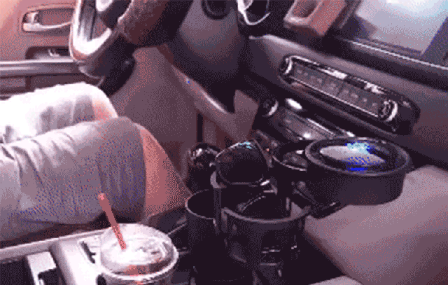 缶コーヒー、ガム、タバコ、アロマ、テイクアウトしたコーヒー、すべてすっぽり!残ったコーヒーは車内の備え付けのカップホルダーに!