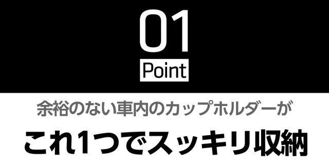 ペットボトル飲料、ビール缶、牛乳パックやスナックバーまで。収納スペースを最大限に活用し、カップホルダーの他に様々なものを収納できます!