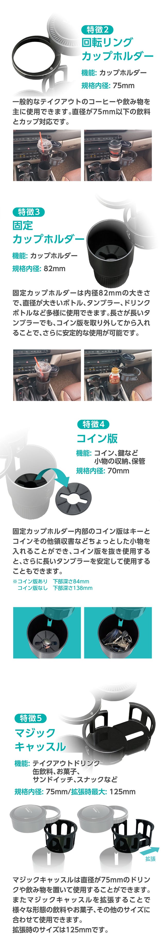 - 回転カップホルダーでマルチ収納も可能!既存製品より大きくなりより収納できるものが増えました!