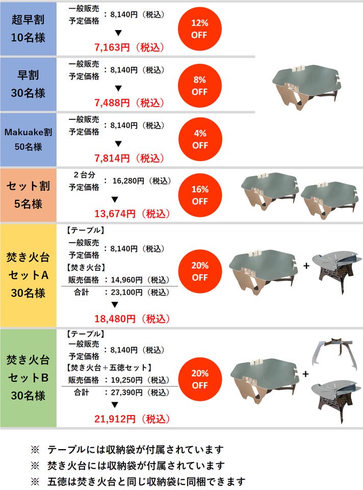 【焚き火台セットA/テーブル+焚き火台20%OFF】