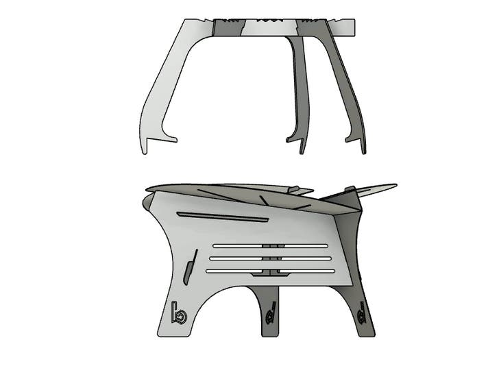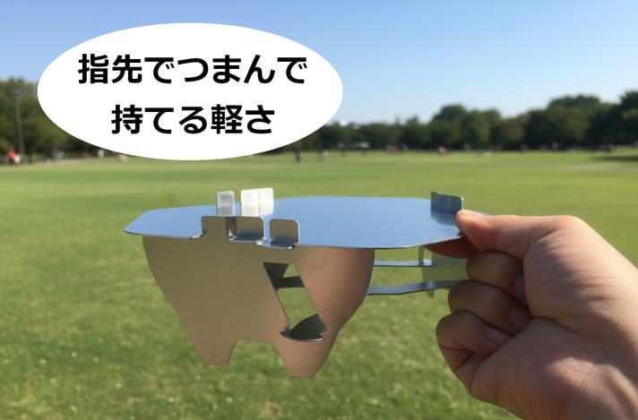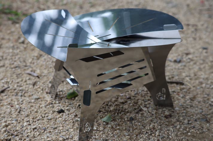 焚き火台「火炉裏」のプロジェクト実施後に、サポーター様から「五徳が欲しい」という要望を受け、デザインとしての一体感を損なわないように考えたシンプルな五徳。簡単に取り外しできるので調理の時だけ取り付け、調理後は取り外してのんびりと炎のゆらぎを愉しめます。
