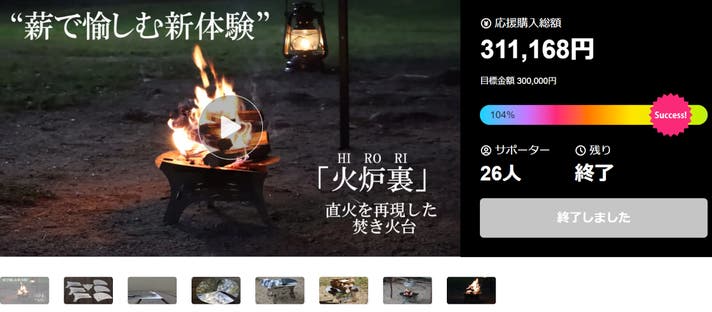 【焚き火台「火炉裏」のプロジェクト実施サイト】