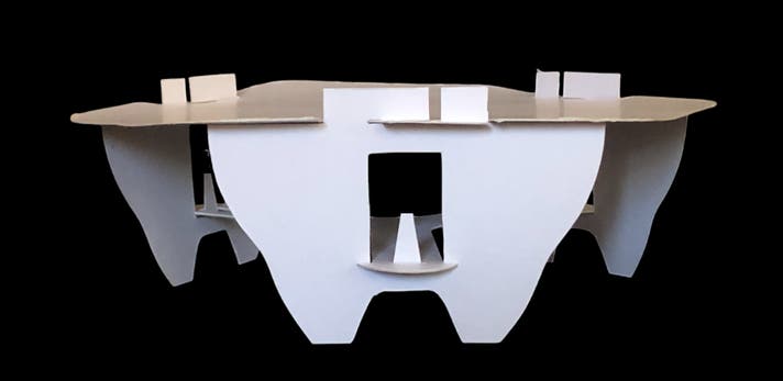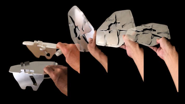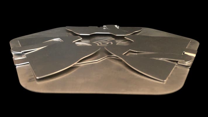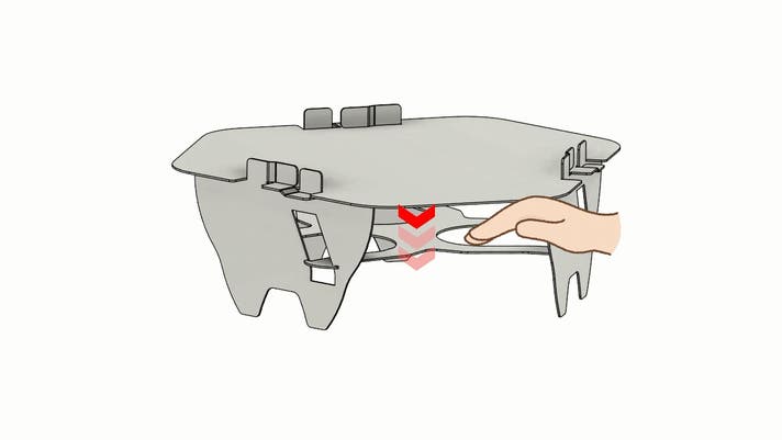 これで金属での試作に取り掛かれると思っていたら、次は曲げ加工できない問題に直面。L字切欠きの部分はZ曲げで設計しているのですが、曲げと曲げの距離が短くて曲げ加工ができない。(業界の人はあたり前で知ってることでした)曲げの角度、距離を見直してシュミレーションを繰り返しましたが不可。たくさんの人に相談しても、「この設計なら金型だな...」と。個人事業の私には大量生産できないし金型は無理!3Dプリンタなど他の製造方法も模索しましたがコスト高になるしそれも厳しい。無謀な挑戦だったかと半ばあきらめながら、それでもあきらめきれずに色々と相談させていただいていた時に、1950年創業、家庭用ミシンの販売からはじまり、現在では精密切削加工、治具開発、プリント事業など、幅広いものづくりを手掛ける「ナんでも スぐ コしらえる」ナスコ株式会社様に出会うことができました。このテーブルの設計を実現する為に様々な方法をご提案いただいて、ようやく曲げ加工の問題をクリア。最後はスムーズに動作するように0.01mm単位で微調整を繰り返し、ようやくたどり着くことができました!