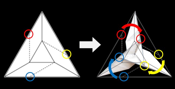 悪くはない。悪くはないけど、これだと3箇所も差し込む手間がいる。この手間すら省くことができないか?なかなか妙案が浮かばない中で思い出したのが焚き火台「火炉裏」の発想の原点となった「ねじり折り」。