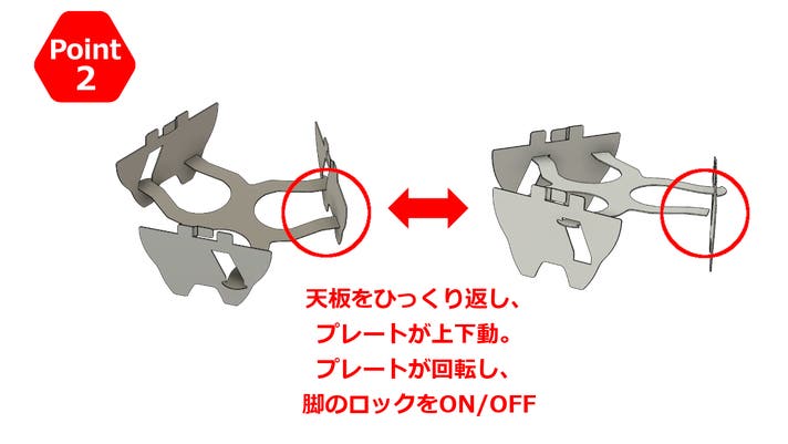 たった5パーツだけ。ヒンジでもなく、ネジ1本も使わない独自の折りたたみ構造。これでパーツの紛失も解決!