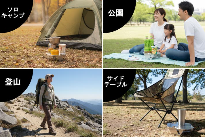 ソロキャンプ、登山、近所の公園で、シーンを選ばない手軽さ。いつでも、どこでも、いくつになっても気軽に使える新発想のソロテーブル「ちゃぶスタmini」が誕生!
