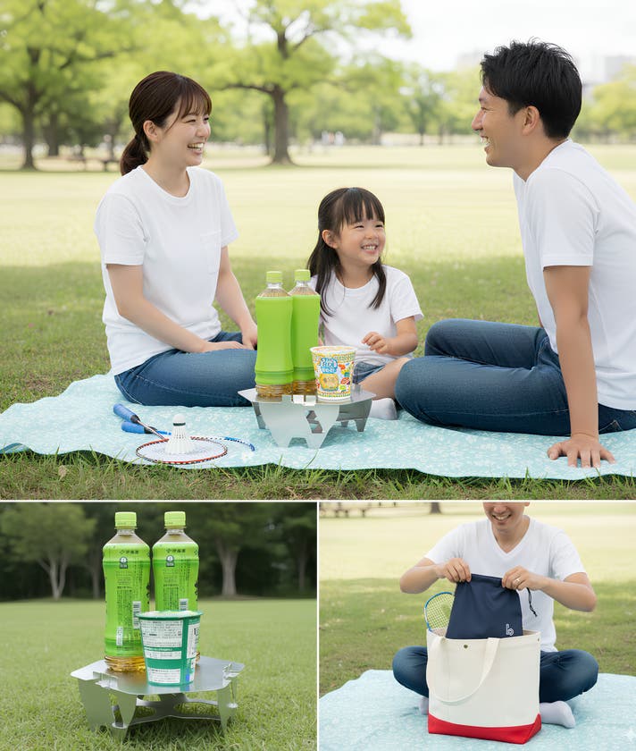 家族や友人と休日の楽しい時間を過ごすひと時。休憩タイムに飲み物やおやつをちょっと置けるテーブルがあれば...そんな時には「ちゃぶスタmini」